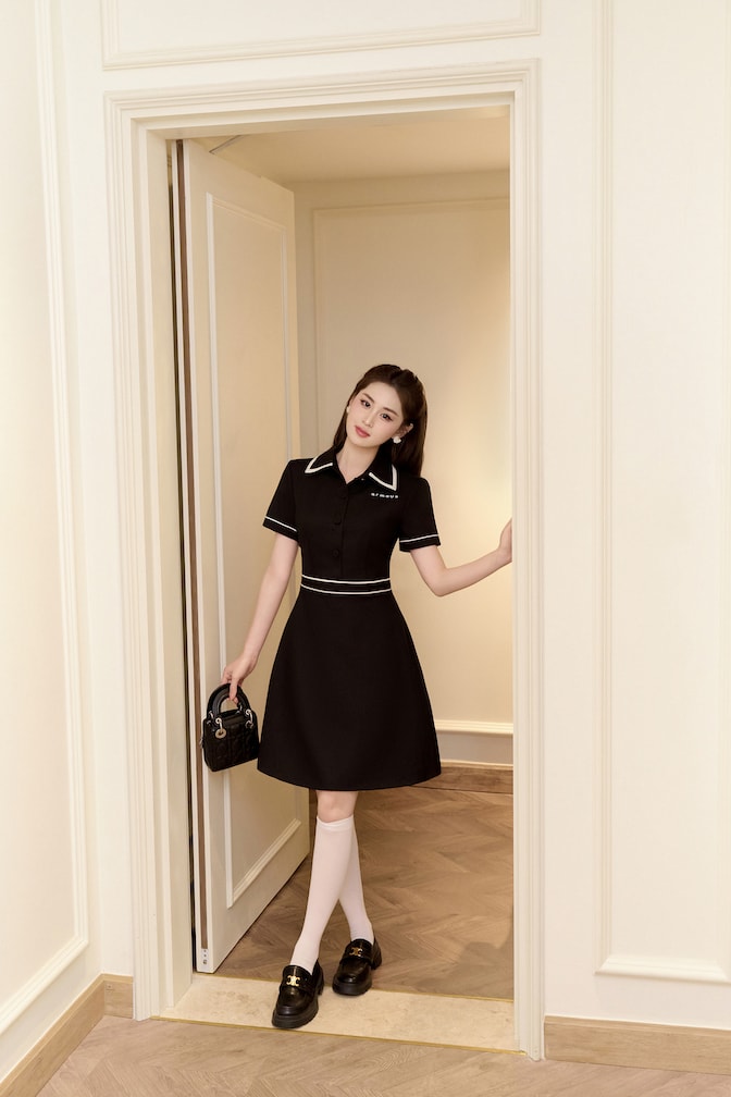 Đầm Bambi chiết eo thêu logo armous thanh lịch và xinh xắn